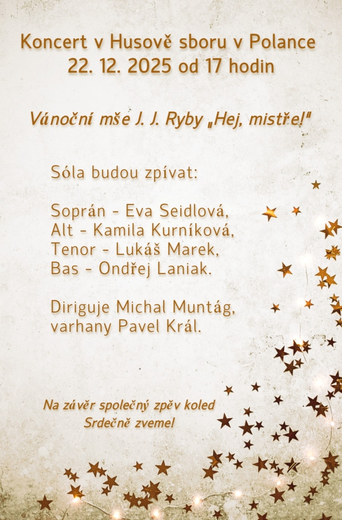 Olomoucká diecéze2025-12-15 09:44:262025-12-15 09:44:26Koncert v Husově sboru v Polance, 22. 12. 2025 od 17 hodin