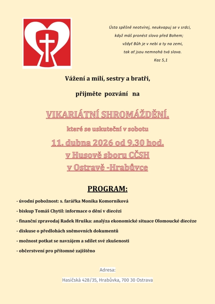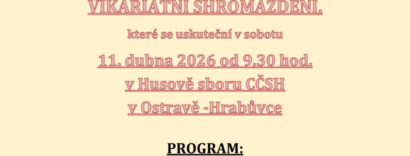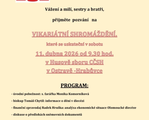 Olomoucká diecéze2026-04-08 10:13:342026-04-08 10:13:34Vikariátní shromáždění v Husově sboru v Ostravě – Hrabůvce, 11. 4. 2026 od 9:30 hod.